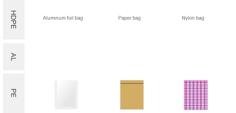 Various film bags such as aluminum foil bags, paper bags, nylon bags, etc. |